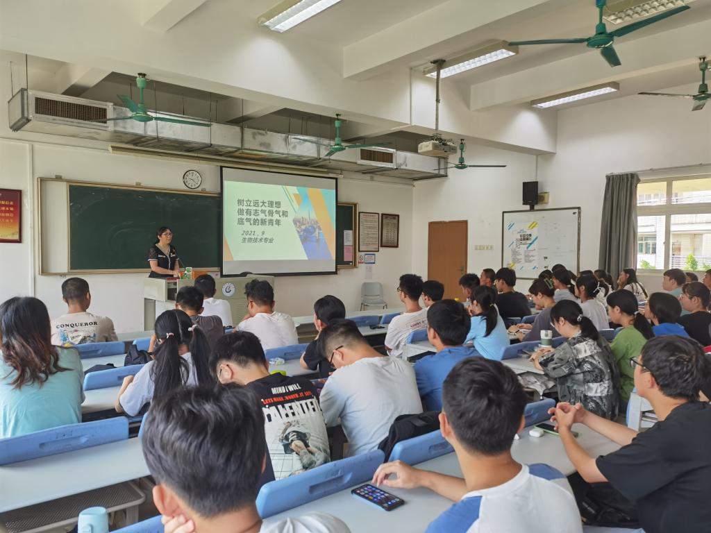 【基础讯】为进一步动员、激励2020级生物技术同学们在新学期确立目标,坚定信念,增强专业信心。2021年9月9日,伟德国际1946亚洲版2020级生物技术专业“树立远大理想,做有志气骨气和底气的新青年”秋季学期思政第一课在大学城校区教学楼A401开展。本次思政课由公司党委邝枣园书记主讲,2020级生物技术专业全体同学参与。
