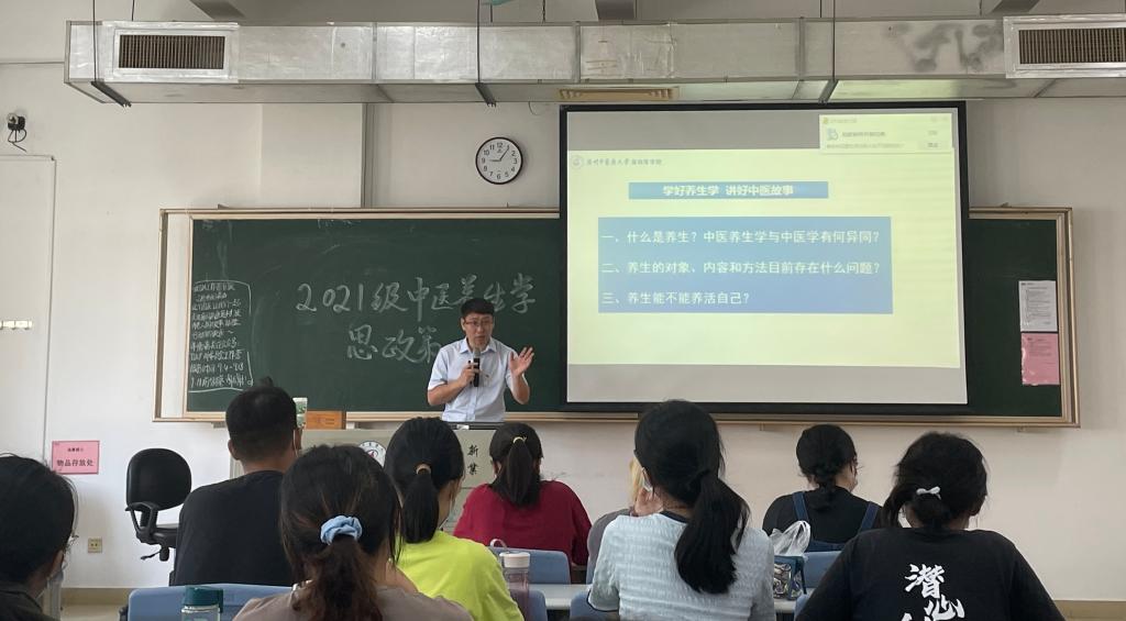最后,黎晖经理指出中医养生学班级的同学们要“学好养生学,讲好中医故事”,努力成为能够运用中医养生学理论与方法,从事中医治未病、养生保健、体质调理、食疗营养、中医临床、康复治疗、医养结合等工作的复合型中医人才。他表示同学们如果想成为“能治病、懂养生、会管理”的人,就要不断突破自己的上限,下苦功夫。