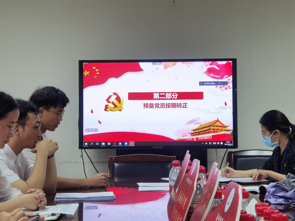 【基础讯】6月16日晚19:00,为充实党支部党员队伍,改善支部党员结构,在落实从严治党方针基础上,2018级研究生党支部根据组织发展原则,于基础楼423会议室召开党支部预备党员转正大会,伟德国际1946亚洲版党委组织员洪海都受邀列席本次会议。根据新冠肺炎疫情防控要求,会议采用线上线下结合形式召开,党支部书记姚晓玲担任会议主持,支部共24名党员参加本次会议,其中应到正式党员14名,实到正式党员12名,符合开会要求。
