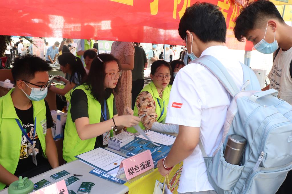 在迎新的这一天,校门口那条长长防疫入校通道志愿者们不知道来回走过了多少遍,即使太阳很大,身体的疲惫感很重,但志愿者依旧认真负责地为每一位基础新生服务。