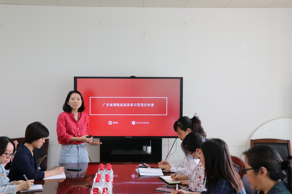 接着,邝枣园教授进行了“教授名师工作室”课程思政教学经验的分享。邝枣园教授结合自己牵头的教学团队获得了2020年广东省高校思政示范团队的经过,分享了在教学团队建设中如何围绕结合专业建设做思政基础建设、资源建设和教学理念的凝练。名师工作室青年教师黄雅丽老师先后获得了2020年广东省高校课程思政课堂、2021年广东省高校课程思政课程。黄雅丽老师为大家做了课程思政项目申请的经验分享。黄老师结合自己的成长经历,为大家生动的讲述了自己如何在专业知识传播的过程中进行思想教育,并且详细的介绍了如何填写广东省课程思政示范课堂和示范课程的申报书,包括需要提前积累和准备的教学资料,以及书写时的一些经验。黄雅丽老师的分享深深的吸引了参会老师,大家积极的参与提问和互动,现场气氛十分热烈。每一位参会老师都表示纷纷通过这次组织生活会受益匪浅,对课程思政的认识有了进一步的深化和提升,教书育人的意识得到了增强,为自己今后的教学工作以及课程思政项目的申报起到了积极的助推作用。