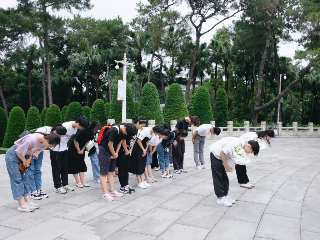党员们稍作休息后前往广州起义烈士陵园。陵园中,张太雷、叶挺、叶剑英......一个个镌刻在石碑上的姓名、一座座共产党人的雕塑,一件件可歌可泣的英勇事迹,让大家倍感震撼。周文雍、陈铁军这对革命伉俪的“刑场上的婚礼”事迹更是让人深受感动。随后,在庄严肃穆的广州起义烈士纪念碑前,同志们列队肃立,深切缅怀革命先烈的崇高精神和不朽伟业,向革命先烈敬献鲜花、集体默哀,以寄托对革命先烈的无限哀思。仪式结束后,全体成员心怀崇敬和感恩,开始参观烈士陵园,有序瞻仰烈士墓碑、英烈墙及烈士墓。