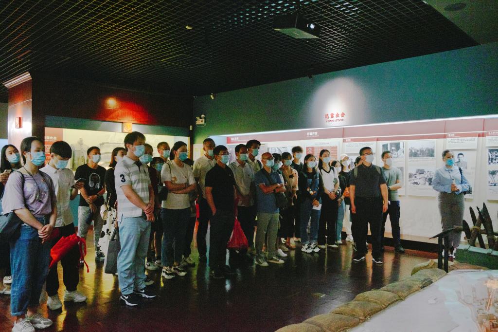 上午10时,在广州起义纪念馆讲解员带领下,党员们依次参观了“广州起义”展场的基本陈列、纪念馆北楼原工农红军指挥部旧址、南楼原警卫连连部和库房旧址,认真听讲中国共产党领导的工农兵武装起义,观看了革命先烈艰苦卓绝的革命斗争事迹,了解到广州起义红布带既是广州起义战士的识别带、也是广州苏维埃政权的象征,对广州起义的准备、经过、结果和意义进行了系统的学习和感悟。一幅幅斑驳旧照、一件件历史文物、一个个沉重的故事无不带着革命烈士的血与泪,诉说着当年之事,同志们也因此逐渐深入了解中国第一个城市苏维埃政权——广州苏维埃政府。