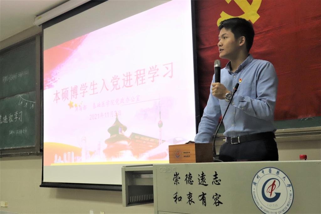 【基础讯】11月3日18:30,伟德国际1946亚洲版2021-2022学年“青马工程”第一讲暨党史学习教育专题培训在综合楼202举行。公司党政办公室党委组织员洪海都主讲题为《本硕博员工入党进程学习》的专题授课,员工工作办公室辅导员韩娟、李婷作为嘉宾出席。本次青马工程暨专题培训为公司党史学习教育工作安排部署之一,旨在带领本硕博员工学习发展党员流程要求、入党文书材料写作等有关知识,加强基层党员基础知识和业务能力培训,为建党100周年献礼。