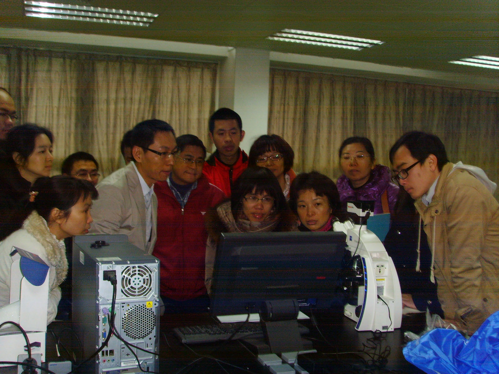 2013年1月11日上午9:30,在基础楼316室西医基础公共实验室组织了新年来的第一次学术活动。本次活动邀请了Motic公司工程师对新购进的图像分析仪进行使用培训。除本科室全体人员外,组织胚胎学、病理学、西医学概论等教研室的多位教师以及部分研究生和本科生也参加了培训。