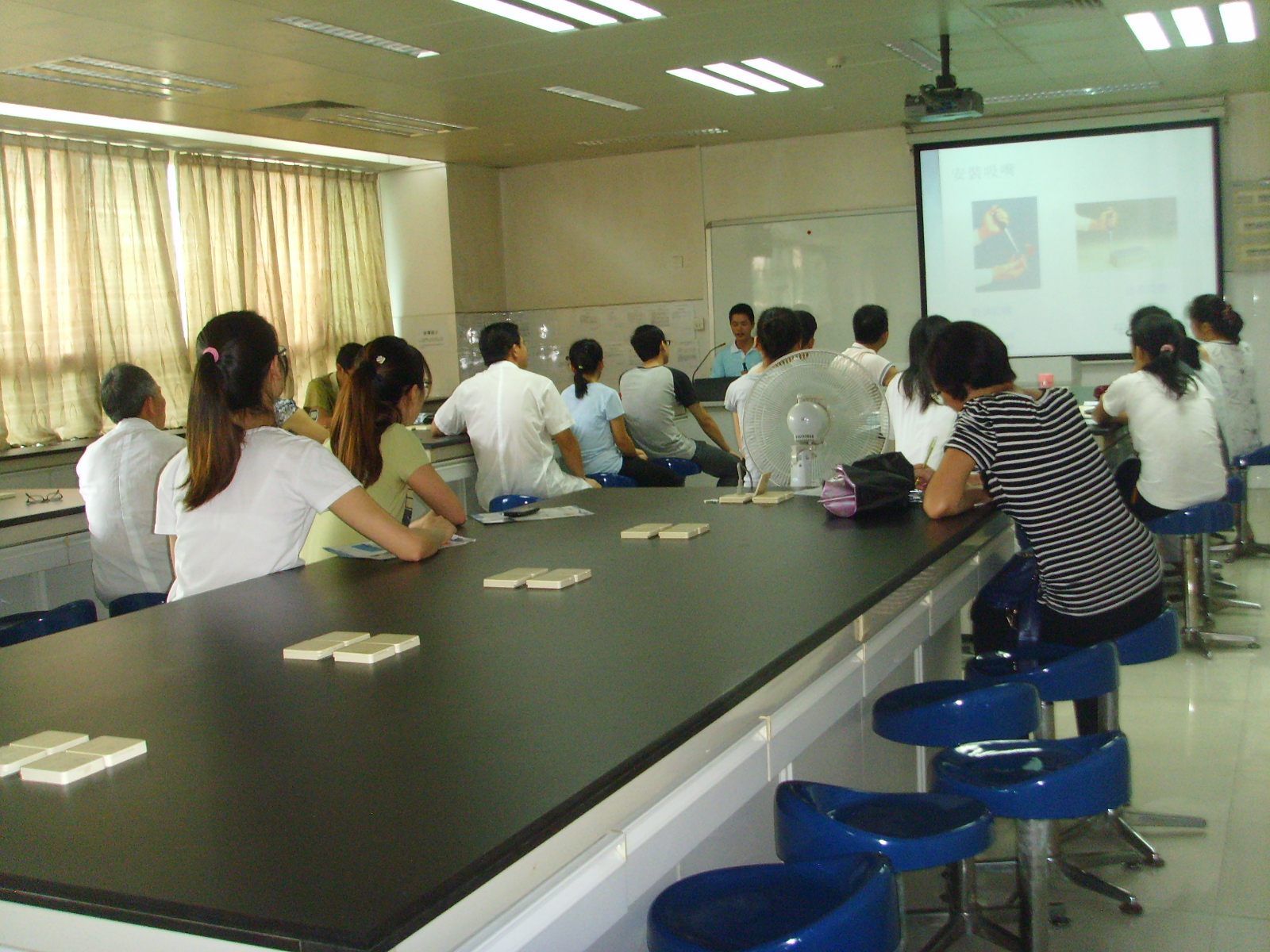 2012年10月9日上午10:00,在基础楼211室如期举行了西医基础公共实验室10月份的学术活动,邀请吉尔森华南区服务中心技术人员进行“移液器性能与使用”的培训。除本科室全体人员外,闻讯而来的各学科研究生也参加了培训。