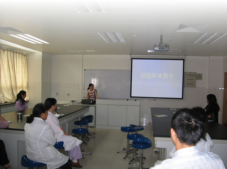 2009年3月12日上午10点,张赛霞老师在西医基础公共实验室每月举行一次的学术讲座中主讲了《人胚胎早期发生》,张老师在讲座中简单介绍了人体胚胎的发生过程,并逐个介绍发生在各时期的胚胎标本。