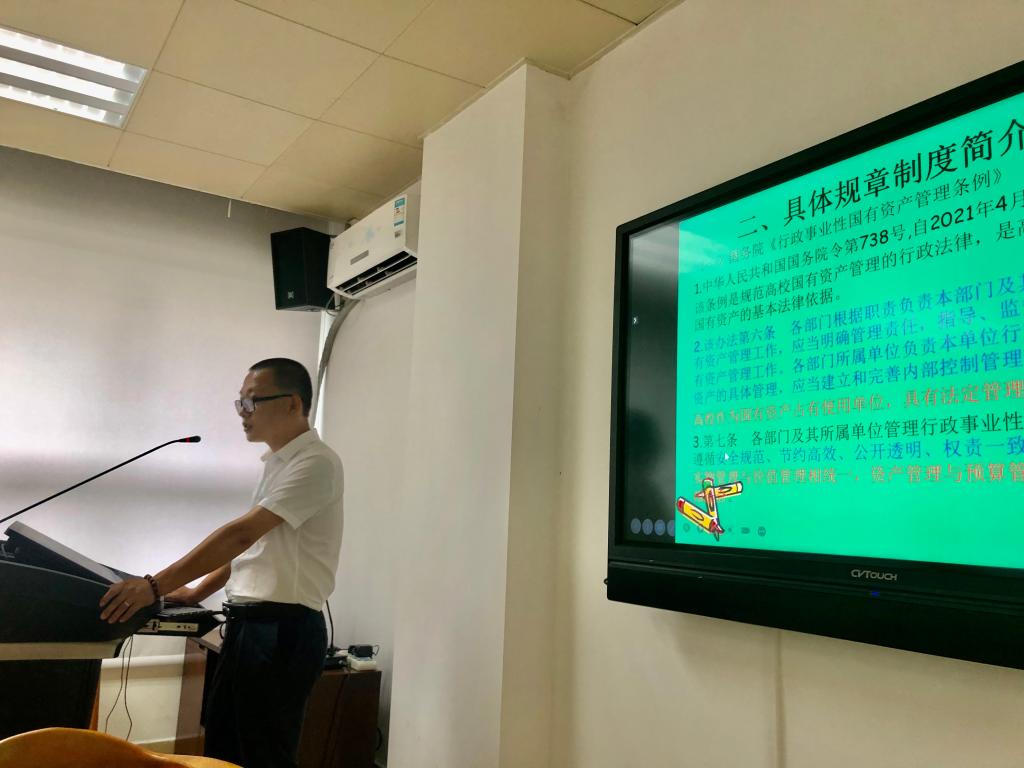 资实处王画宇科长就国有资产管理工作的重要性进行宣讲,再次明确了资产管理工作职责。陈章兴高级会计师指出,国家法律、部门规章和公司规定是工作指引、工作支撑和考核依据;重点介绍了国务院的《行政事业性国有资产管理条例》(4月1日开始施行)和公司《国有资产管理办法》(去年11月新修订)、《大型仪器设备共享管理办法》的部分重要条款,强调公司及属下各单位(部门)作为国有资产占有使用单位,具有妥善管理国有资产的法定责任;建议提高资产管理工作的规范性、及时性、先进性,贯彻创新、协调、绿色、开放、共享的新发展理念,并详细讲解了公司关于加强资产管理员配备、资产配置、资产信息变动、资产处置、进口设备管理、校名校标项目管理、资产年度盘点等方面管理要点。