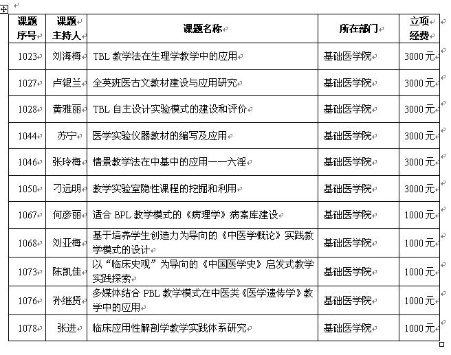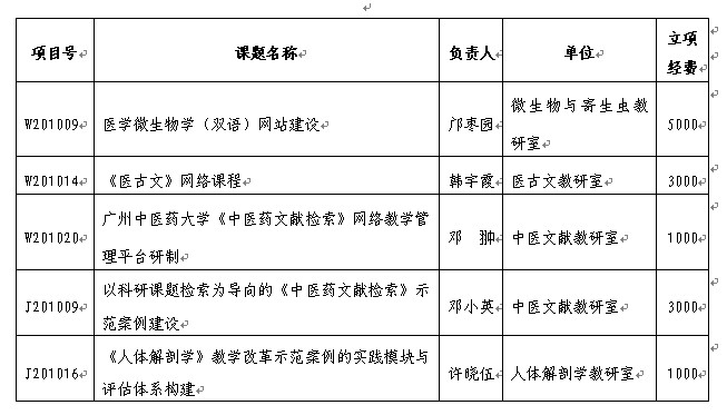 2010年度校级教育研究课题、现代教育技术研究课题立项项目