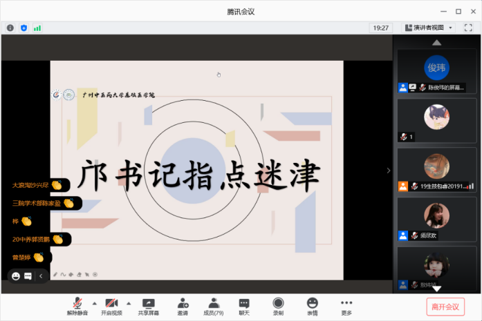青春因梦想而闪亮,青春因科研而美丽。10月15日18:30,伟德国际1946亚洲版第六届“启研”课题设计大赛暨第九届挑战杯院赛之宣讲会暨开幕式于腾讯会议举行。公司党委邝枣园书记、张坚副书记以及优秀本科生敖玮祯同学出席本次宣讲会暨开幕式。