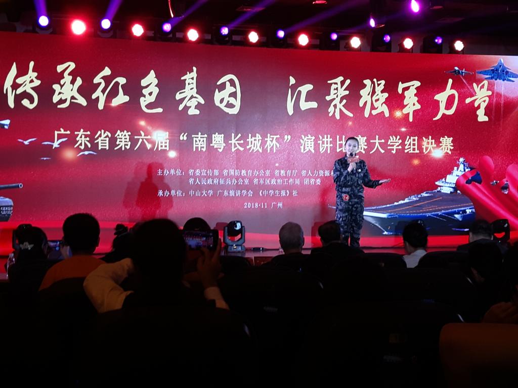 1124日下午,由省委宣传部、省国防教育办、省教育厅、省人社厅、省征兵办、省军区政治工作局、团省委联合举办广东省第六届“南粤长城杯”演讲比赛决赛(大学组)在中山大学南校区熊德龙员工活动中心举行。在全省高校海选、初赛、视频复赛中脱颖而出的30强选手围绕“传承红色基因 汇聚强军力量”这一主题进行精彩演讲,公司彭博同学荣获三等奖!