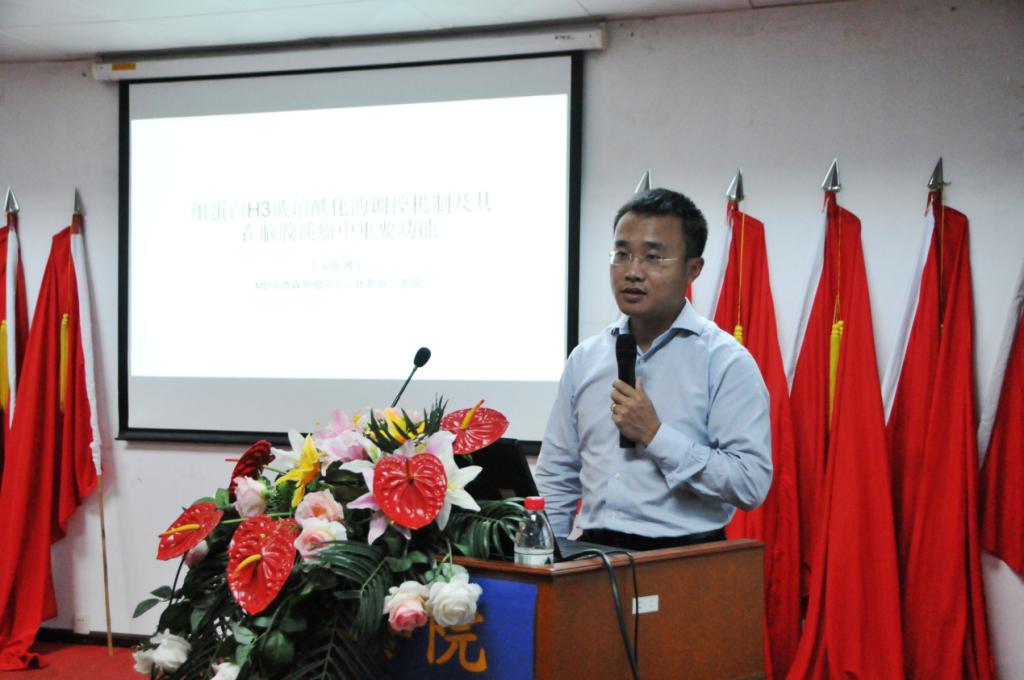 2017年10月24日下午两点,伟德国际1946亚洲版学术论坛讲座——“组蛋白H3琥珀酰化的调控机制及其在脑胶质瘤中重要功能”在伟德国际victor1946大学城校区基础楼438会议室顺利举行。本次讲座有幸邀请到清华大学直博生、美国德克萨斯州休斯顿市MD Anderson Cancer Center博士后王玉刚博士主讲。病理学教研室主任杜标炎教授担任了主持。