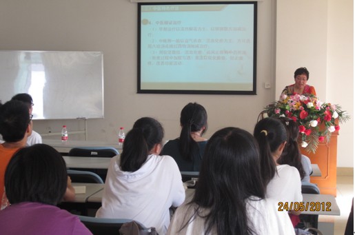 高玉萍医师,专注于运用纯中医方法治疗皮外、骨、伤科病证近30年,尤其在治疗烧伤、创伤、褥疮上有显著疗效,2010年被评为“中华特技名医”。在讲座中, 高医师首先与同学们分享了她从民间跟师到院校学习、从医院工作到诊所开业的医学之路。其后,结合自己多年的临床经验,她从中西医角度简述了烧伤的种类、性质及处理方法,介绍了烧伤早中晚三期的内服方药以及有祛腐生肌特效的自制烧伤外用药Ⅰ号油剂和Ⅱ号膏剂。在讲解中,高医师列举了大量的重度烧伤、褥疮及术后创面不愈合等的治愈案例, 其中包括一例运用纯中医疗法治愈了世界医学难题股骨头坏死病的成功个案。对于烧伤、创伤性疾病的中医疗法,高医师反复强调,应遵循清热解毒、活血逐瘀、托里排脓、养血生津、祛风止痒、祛腐生肌、舒筋活络的法则,善用内服外敷,遵照临床途径,以便达到疗程短、疗效好、费用低、愈后疤痕少、患者痛苦轻、医患关系佳的效果。