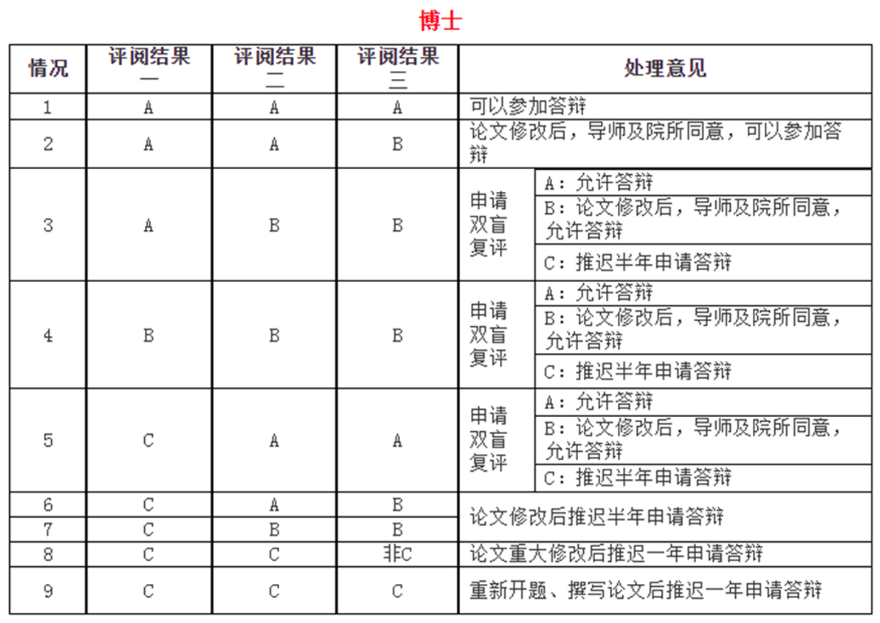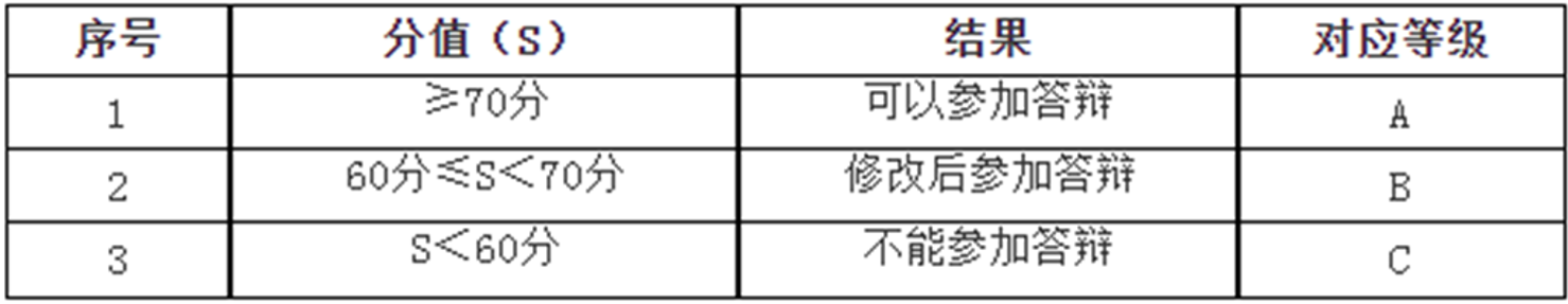 专家评阅书中的论文评审得分(以下简称“S”)S≥70 分者,为可以参加答辩;60分≤S<70分者,为修改后参加答辩;S<60分者,为不能参加答辩。