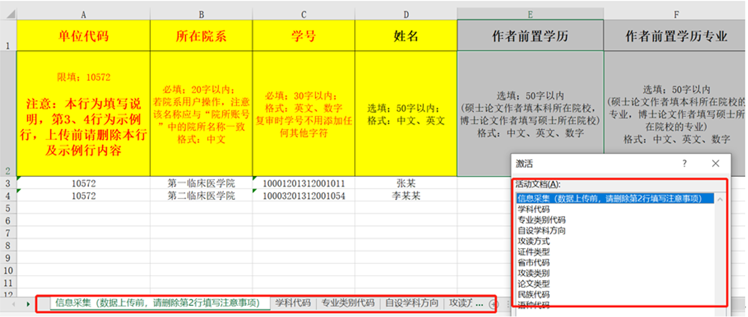 (3)表格中有对应的字典,每个字段按照字典中的标准数据填写;