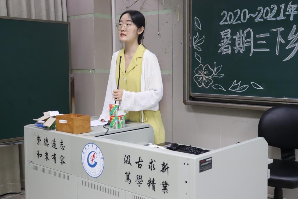 大会伊始主持人介绍了评选方式和奖项设置。紧接着张坚副书记上台致辞,张书记首先介绍了“三下乡”的概念,接着他对各队伍在三下乡期间的贡献作出了肯定及高度赞扬,并指出三下乡是一个锻炼德智体美劳的好方式。接下来各个队伍进行展示,他们用PPT、短视频向观众和评委呈现了细致完整的下乡内容及成果总结,每支队伍的三下乡内容都十分丰富,有八段锦教学,义诊,义教……。他们还展示了与当地居民们和谐相处的点点滴滴,队员居民互送礼物、居民带领队员们参观特色建筑……展示完毕后,评委们对各队伍进行评分。
