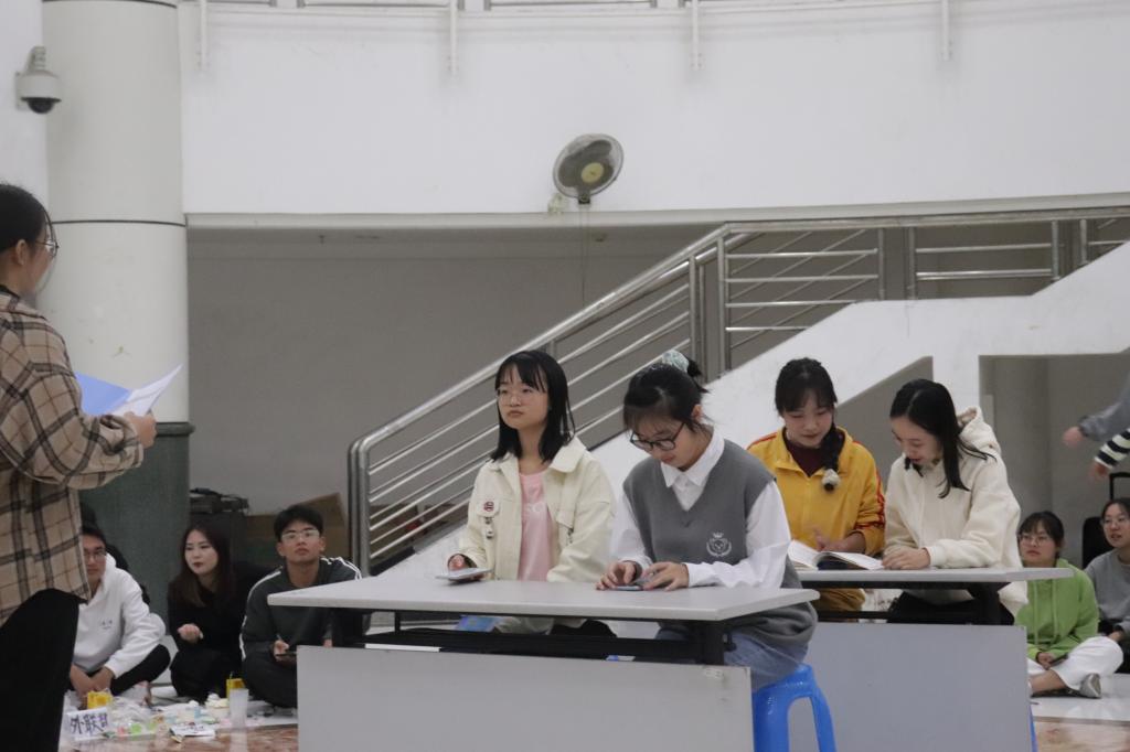 活动伊始,由两位主持人为晚会开场致辞,邓颖儿师姐发表精彩讲话。接着是来自新媒体中心摄录制作部带来的诗歌朗诵《致橡树》和舞蹈《桃花笑》,朗诵声情并茂,舞蹈活泼可爱。随后,新闻采编部带来了精彩小品《内卷风暴》,小品贴近生活,令人忍俊不禁。之后设计创作部带了精彩的合唱表演《情歌王》。至此,活动第一环节暂时结束。