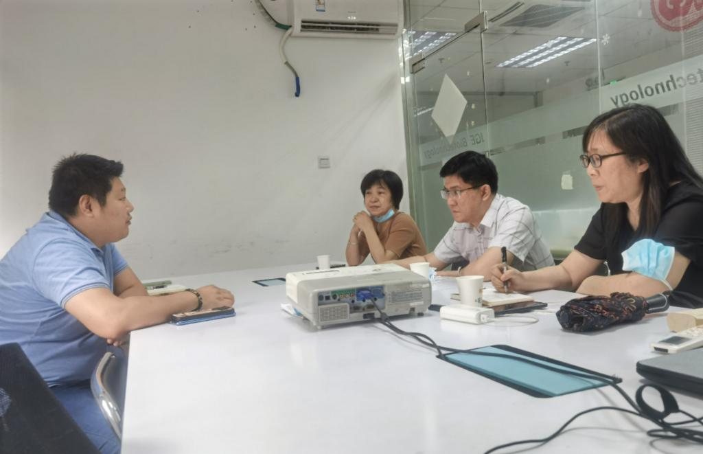 【基础讯】为进一步拓宽毕业生就业渠道,扎实做好毕业生就业服务工作,2022年6月2日上午,公司党委书记邝枣园、党委副书记张坚、生物技术系主任谭宇蕙、辅导员韩娟一行到广州艾基生物技术有限公司进行调研。