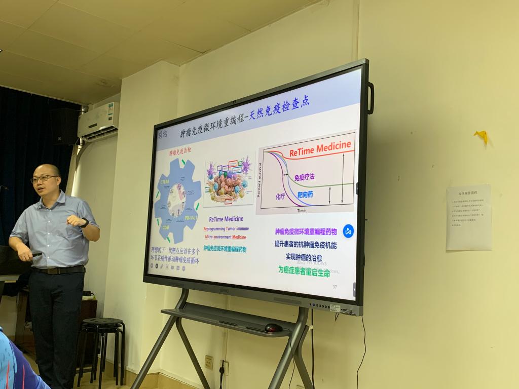 会议开始之前,骆欢欢副经理对陈俊教授进行了介绍,并对其百忙之中抽出时间参加此次会议表示感谢。陈俊教授会议中介绍了肿瘤免疫疗法的科研新进展,并以肿瘤免疫微环境为切入点,重点对巨噬细胞的吞噬受体和“Eat me”信号的机制进行了介绍。陈俊教授所带领的团队聚焦于肿瘤免疫微环境的调节机制,肿瘤免疫治疗新靶点和新疗法的研究,已在一流期刊上发表多项重要成果,获得获得国自然原创探索计划“肿瘤免疫与肿瘤代谢”项目、科技部重点研发项目、国自然面上项目等项目支持。