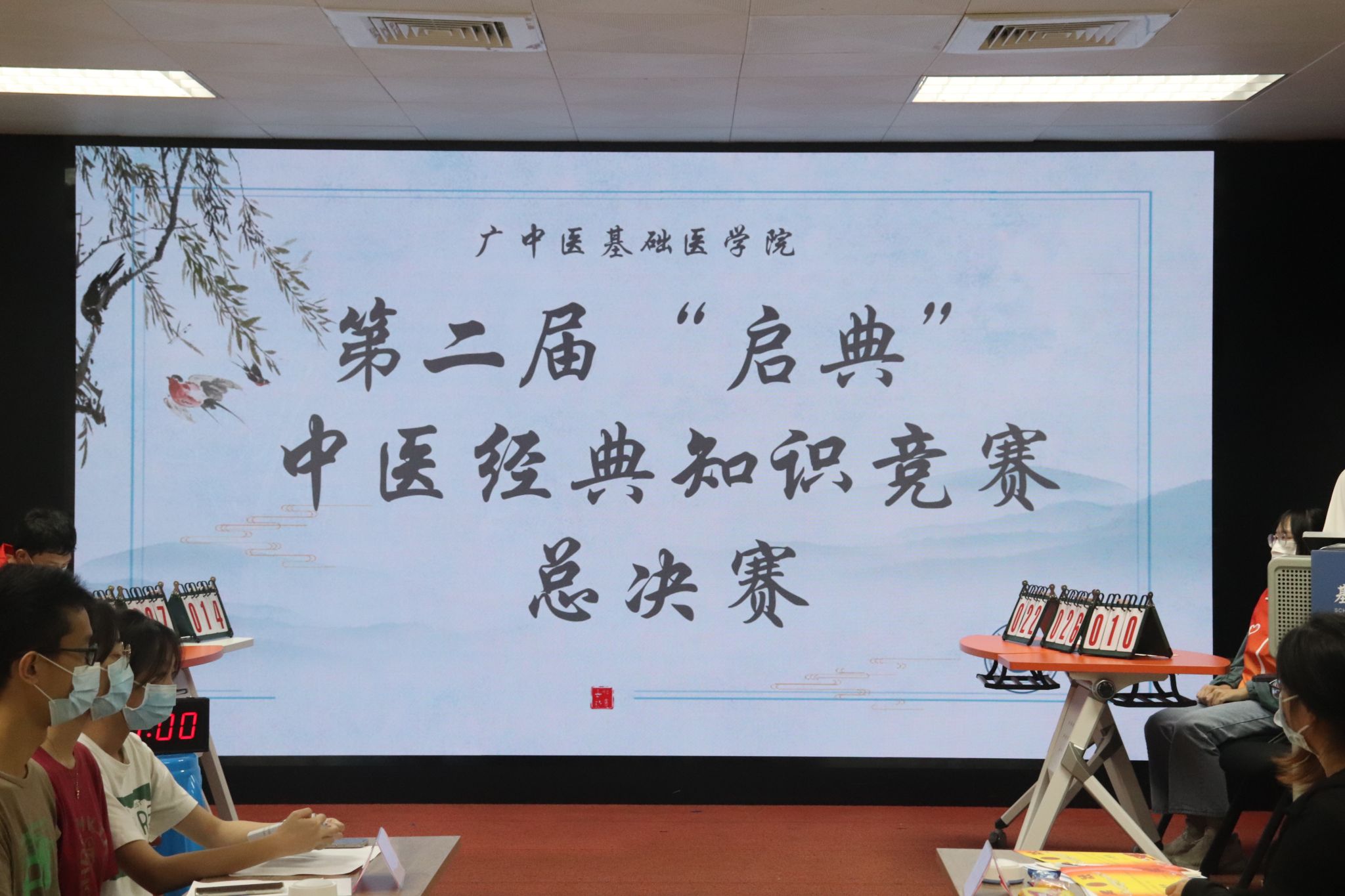 【基础讯】2022年11月15日晚上18:30,伟德国际1946亚洲版第二届“启典”中医经典知识竞赛于基础楼438成功举办,本次活动按照公司疫情防控要求,线下仅参赛队伍参加,观众通过线上直播形式观看比赛。本次知识竞赛邀请伟德国际1946亚洲版中医养生与预防医学系秘书曲卫玲老师、系讲师陈炜老师作为评委。本次活动旨在以趣味的方式增加同学们学习中医经典的积极性。