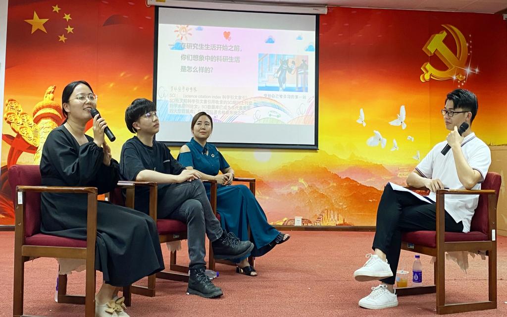 谈及最初和现在对科研的认识,三位嘉宾想法颇为一致,未接触实验之前以为科研在云端之上,接触之后发现科研是脚踏实地。此时主持人引用了经理说的一句话:“研究生要尽快进入状态,就算理想与现实存在落差感,也要边哭边吃饭。”面对科研,我们应当踏踏实实干实事。
