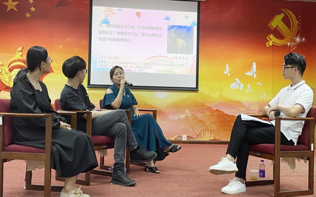 本次交流会邀请到三位嘉宾,分别是2018级博士廖勉勉、2018级博士叶森及2019级硕士孙雪,本次交流会以访谈的形式召开,由伟德国际1946亚洲版研究生会执行主席许世超主持。