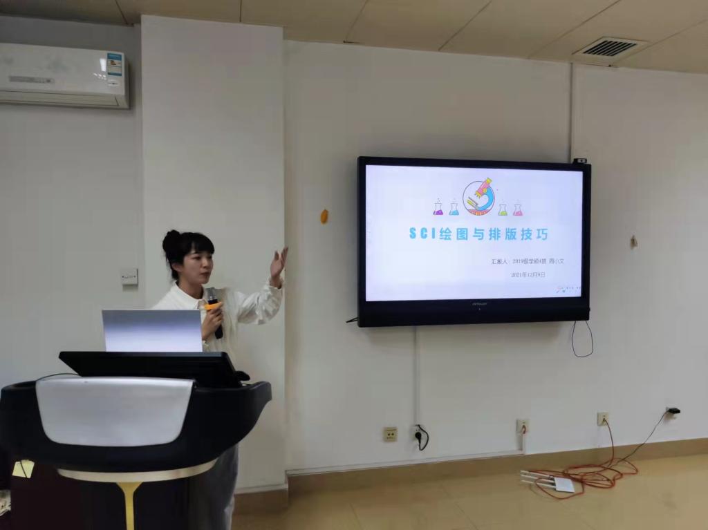 第三位主讲人周小文演讲的主题是《SCI绘图与排版技巧》。她首先阐述了SCI论文图片以及结果的分析方法,加深了同学们对SCI图片的理解;然后从图片应该包含的信息、图片分辨率等方面对SCI常见绘图与排版要求进行了详细介绍;最后介绍了绘制统计图、生物信息学图片以及图片分析和图片处理等相关软件的选择。