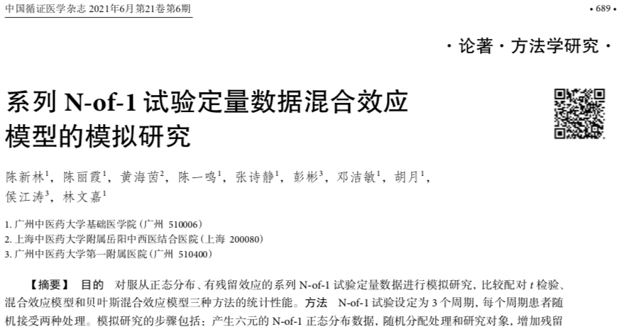 摘要:陈新林教授在《中国循证医学杂志》上发表N-of-1试验研究成果。