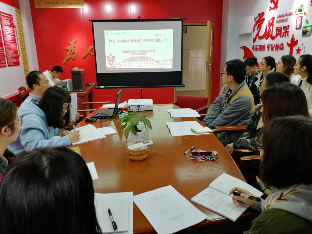 2月28日上午,伟德国际1946亚洲版2017级研究生党支部党员、发展对象、入党积极分子20余人在基础楼437党员之家举行组织生活,学习《中国共产党支部工作条例(试行)》,就下阶段发展对象的培养管理工作进行了布置。