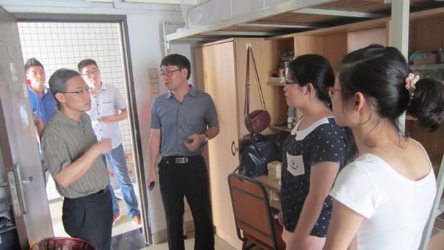 10日下午,公司领导到报到现场了解情况,走访每个新生宿舍看望新同学,对他们的饮食、住宿等问题都进行了细致的询问,并叮嘱了安全注意事项。