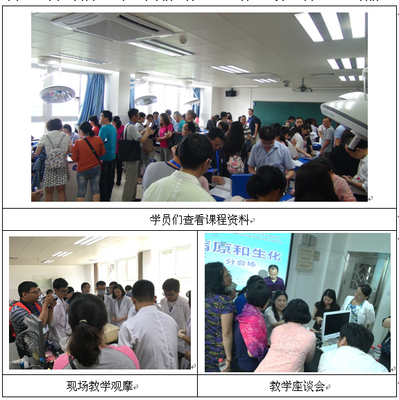 本次培训班形式多样、内容丰富。首先在形式上,有著名专家大会报告形式的主会场,也有行业先锋介绍改革经验的学科分会场;有师生近距离互动的教学观摩,也有各系列教学人员的促膝座谈会;有参观教学实验室、科研实验室,也有查阅课程资料、自由交谈、充分沟通。其次在内容上,覆盖了基础医学全部领域(形态、解剖、机能、病原、生化、中医中药、实验室管理),分为医学类教学实验室建设、实验教学改革研讨和基础医学整合实验课程建设三大类进行培训。