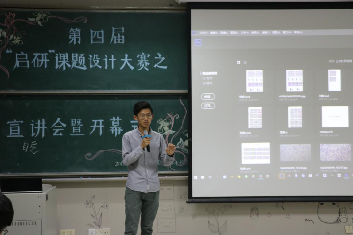 宣讲会伊始,邝枣园教授为本届“启研”课题设计大赛致辞。她强调同学们要按照习近平总书记在全国教育大会上提出的做德智体美劳全面发展的社会主义建设者和接班人的要求,围绕立德树人这一核心,刻苦钻研打好专业基础,培养创新思维,勇于进行科研训练探索;积极践行社会主义核心价值观,提升综合素质,做有大德大爱大情怀的人。