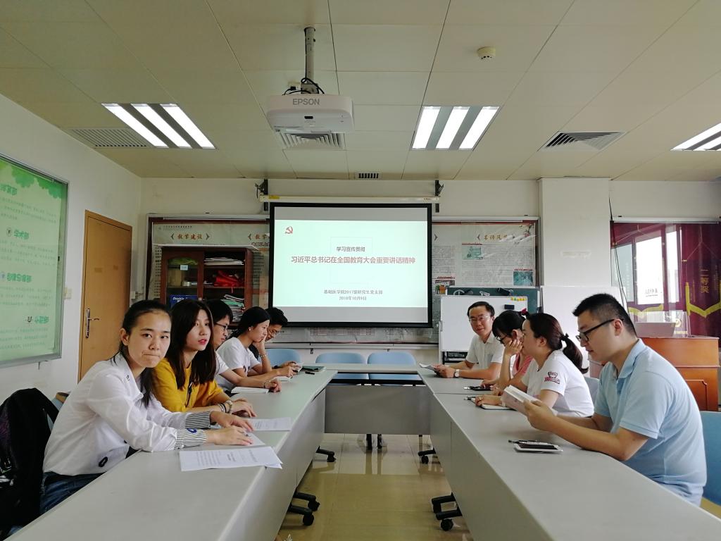 10月9日下午,伟德国际1946亚洲版2017级研究生党支部在基础楼422员工活动室举行专题组织生活,学习全国教育大会精神,进行纪律教育,共有8位党员同志、3位入党积极分子参加学习。