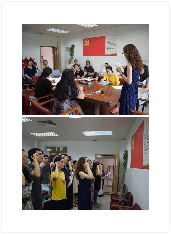 6月29日,教工第三党支部在基础楼437党员活动室举行支部大会,邝枣园书记以普通党员身份参加组织生活。支部大会首先按通表程序讨论发展对象孔洁琛老师的预备党员接收相关事项,经支部全体到会正式党员表决,同意接收孔洁琛老师为中共预备党员并进行了入党宣誓仪式。