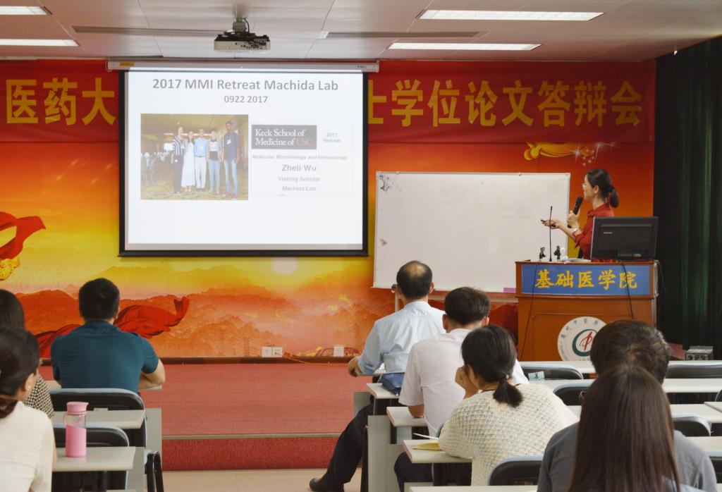 武哲丽教授从美国南加州大学概况、学习与工作报告、生活与文化体验三个方面进行汇报。武教授首先向在场师生解读了该校影视艺术公司作为全球影视一流人才培养高地的原因。着重介绍了所在实验室规范化培训等相关内容。此外详细探讨了肝癌的复发机制、纳米颗粒与免疫治疗的研究思路与方法。