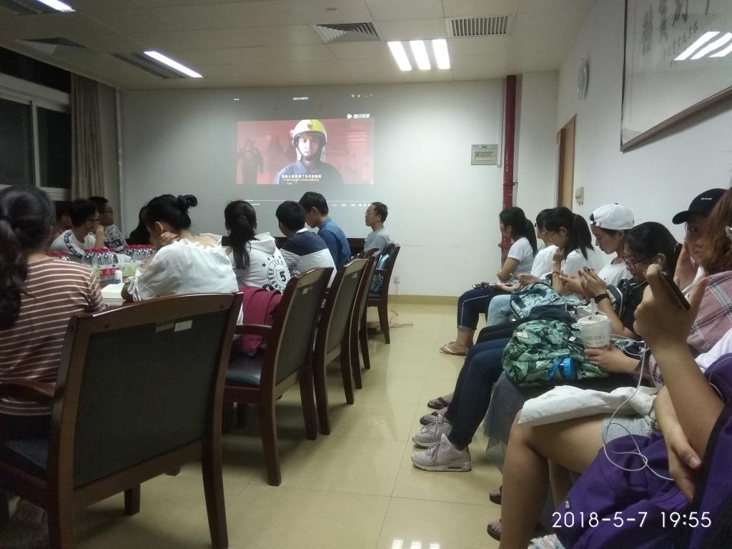 5月7日晚,伟德国际1946亚洲版组织2015-2017级各班共50余名员工在基础楼423会议室集中观看由广东省教育厅联合省公安消防总队、省广播电视台制作的《全省高校消防安全网络直播公开课——消防安全总动员》。