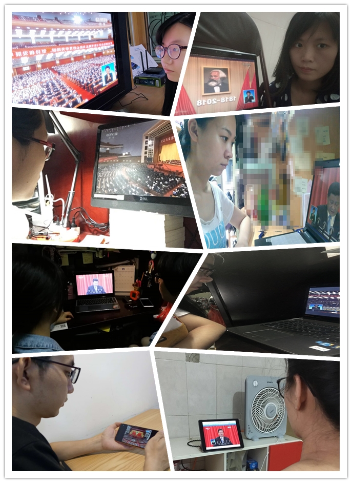 此外,公司各教工、2015级研究生党支部等员工党支部因课程安排等原因未能集中观看的师生党员在宿舍、家中纷纷通过电视、电脑、手机央视客户端等形式观看大会直播。