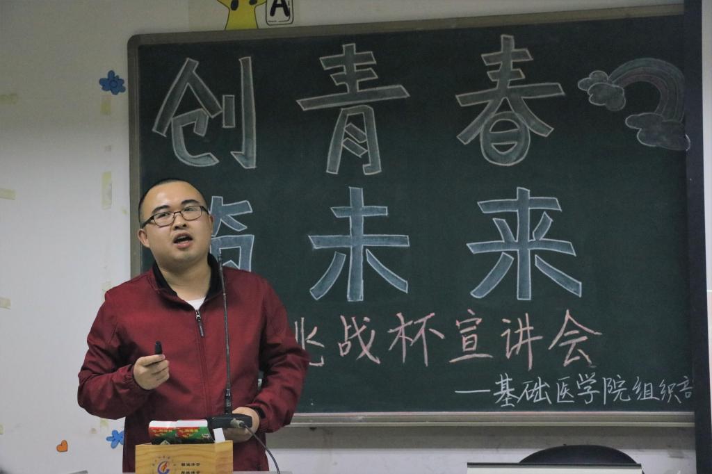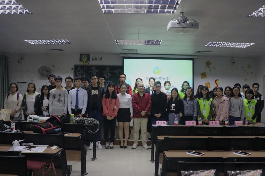 首先,黄裕老师致辞。黄老师讲述了自己2014年参加“创青春·挑战杯”获省赛银奖的经历,以此鼓励同学们积极参加比赛,同时指出:同学们参加“挑战杯”创新创业大赛,既能丰富老员工涯经历,锻炼文笔、提高团队协作能力;又能熟悉商业项目、公司运作流程,希望同学们能够抓住机会锻炼提升自己。