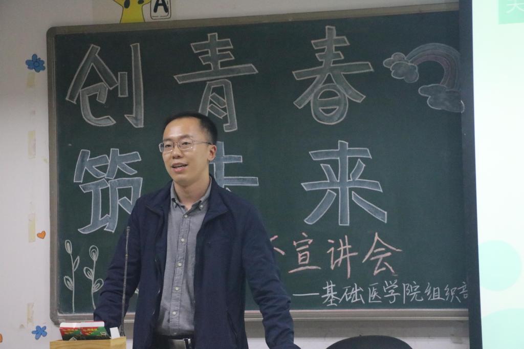 随后,张雷师兄从经历介绍、名词解释、小小技巧三个部分来与同学们分享经验。在经历介绍中,张雷师兄回顾了他的挑战杯之旅,告诉同学们拥有敢闯的心,是赢得比赛的第一步!而后,张雷师兄解释了关于“挑战杯”的一些概念,并提出一系列实用的参赛建议。讲解过程中,张雷师兄用他幽默的语言赢得了听众多次热烈的掌声。最后的提问环节,张雷师兄更是细心指导,一一为员工耐心解答。