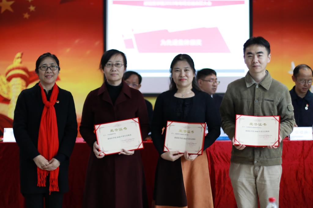 首先,骆欢欢副经理宣读了《关于表彰2018年伟德国际1946亚洲版先进集体的通知》,邝枣园书记为被评为2018年度先进集体的中医基础学系、病理学与病理生理学系、中西医结合基础研究中心三个部门的代表颁发奖状。
