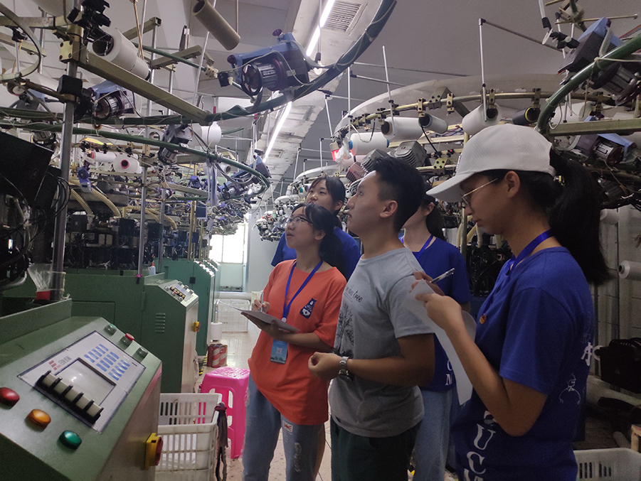 纺织业是谷饶镇的最大产业链。为深入了解当地手工劳动者生活健康状况,在当地领导蔡俊良书记的带领以及各工厂负责人的积极帮助和支持下连续2天走进4家大型纺织工厂进行实地调研,完成118份高质量调查报告。队员们主要通过线下对员工进行访谈及线上填写调查问卷的方式,充分了解了纺织厂员工的生活健康情况。调研期间,同学们还坐在缝纫机前亲身体验了“打枣”的工作流程。