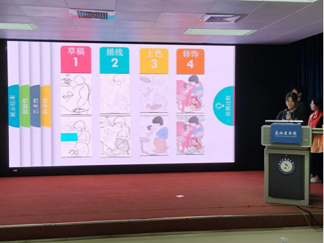 随后,比赛正式开始,纸质绘图组和电子绘图组的参赛选手们依次进行了展示。有的选手从课本、五行学说和阴阳太极图中获取灵感;有的选手认真严谨地在创作时多次修改比对实物比例;有的选手在作品里诠释了拳拳报国情怀;还有的选手将写实与想象相结合,并且用强烈的色彩相比较,突出了绘画的美感。各位参赛选手的展示精妙绝伦,各具特色。