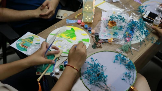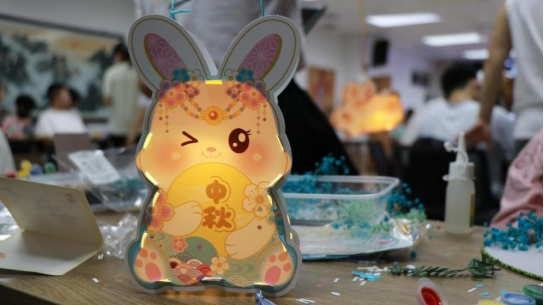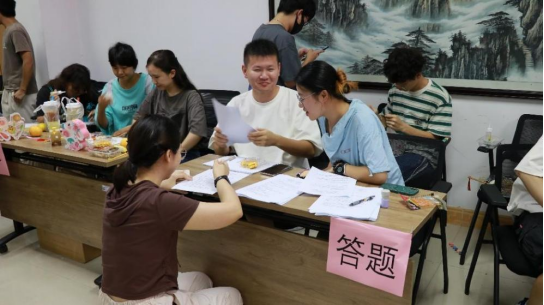 在《我和我的祖国》、《但愿人长久》的背景声中,研究生会组织全体同学们进行“强国有我,齐聚一堂”泡沫板签名活动,并由来自全国各地的同学们上台分享自己家乡过中秋的习俗或相关趣事,同时开张“同侪友爱,其乐融融”中秋集市,开展吃月饼、做灯笼、猜灯谜、制团扇、拼地图、答题、默写核心价值观和集章抽奖等趣味活动。会场欢声笑语、热闹非凡,沉浸在节日的喜庆之中。