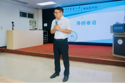作为2021级经典导学导师代表,黎晖教授发表致辞,分享指导中医经典教学的经验。他首先感谢了完成三年“经典导学”并继续指导2023级员工的导师们,并欢迎新加入的老师。他指出,经典是中医的根基,并以“三个目标”的教学案例,分享了自身导学的经验和感悟。他寄语各位导师,以德施教,教学相长;并嘱咐同学们认真向课程导师学习,既要学习知识,也要学习做人,争取通过三年的时间,打好中医的基本功。