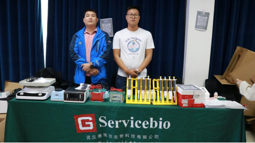 宣讲结束后,各公司技术人员在摊位上展示实验所需试剂、耗材和仪器设备供同学们观摩学习,开拓同学们的科研视野。同时,各公司技术人员针对同学们提出的问题进行了详细的解答,并现场演示各仪器设备的使用。