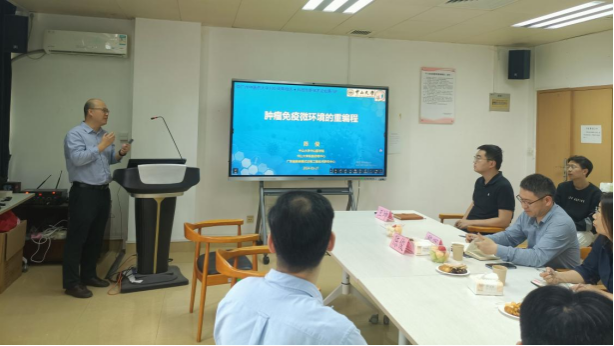 3月27日下午,伟德国际1946亚洲版在大学城校区基础楼521学术会议室举办了伟德国际victor1946100周年校庆系列学术活动科技创新学术论坛第7讲——《肿瘤免疫微环境的重编程》,主讲人为中山大学陈俊教授,讲座由基础医公司经理黎晖主持,伟德国际1946亚洲版师生共30余人参加。