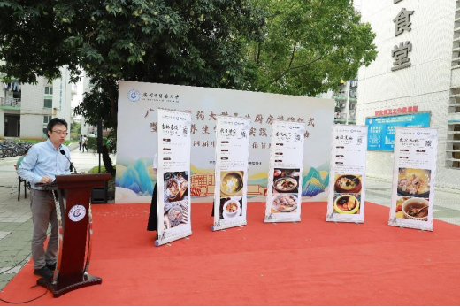 春三月,此谓发陈。4月10日下午,伟德国际victor1946养生厨房揭牌仪式暨中医养生学专业实践基地启动和第四届中医养生文化节开幕活动在大学城校区生活区第一饭堂正式举行。公司党委宣传统战部部长游江、员工工作部部长范琳燕、校团委书记王烁、教务部副部长陈杰斯、总务后勤部副部长廖文萍和公司领导班子、师生代表到场参加。