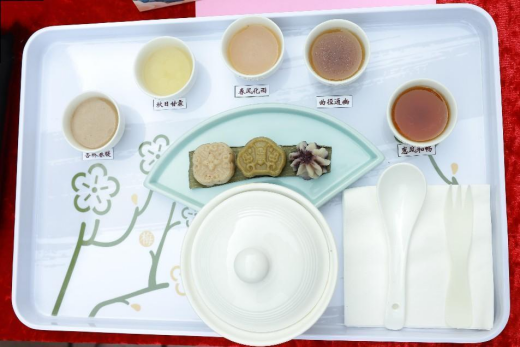 伟德国际1946亚洲版中医养生与预防医学系主任谈博、2021级中医养生学专业本科生廖诗佳对养生厨房第一期推出的5份汤品和3份糕点进行了详细的介绍和讲解,中医养生学专业员工代表带来《易筋经》表演。领导、嘉宾现场品尝膳食并到各个摊位前与员工互动交流,详细了解汤品糕点制作过程、导引术、足疗草本阁等中医养生内容。