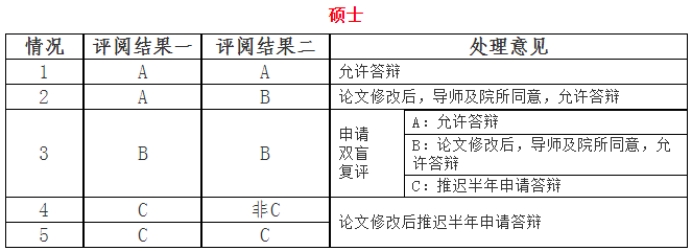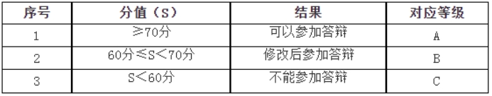 专家评阅书中的论文评审得分(以下简称“S”)S≥70 分者,为可以参加答辩;60分≤S<70分者,为修改后参加答辩;S<60分者,为不能参加答辩。