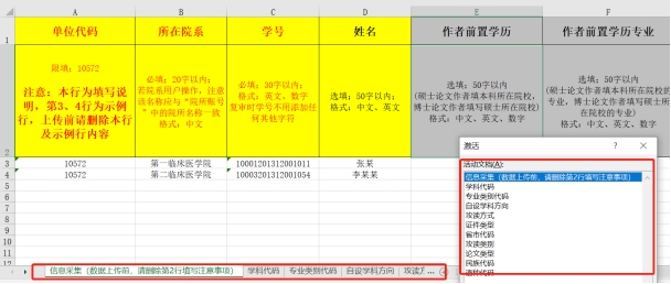 2、表格中有对应字典,每个字段按照字典中的标准数据填写;